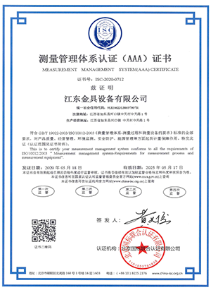 測(cè)量管理體系證書(shū)
